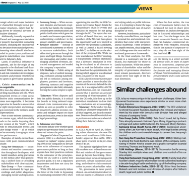 In the final analysis, the CDL episode is a cautionary tale for all boards, but especially for those in family businesses. While the preservation of shareholder value and the integrity of governance structures must remain paramount, directors should never lose sight of the human dimension.