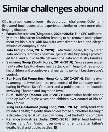 CDL is by no means unique in its boardroom challenges. Other family-owned businesses also experience similar or even more challenging disputes.