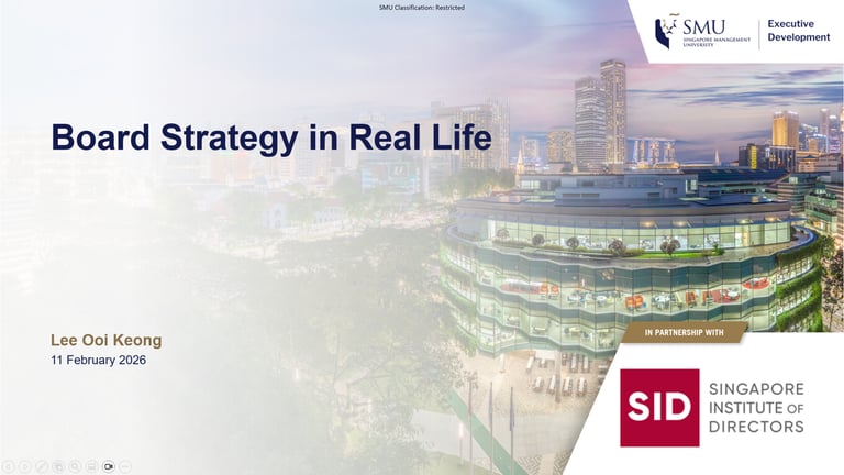 Selected speaking engagements, board sessions and media appearances by Independent Board Director and Strategic Performance & Resilience expert Lee Ooi Keong. Audiences include Board Directors, C‑suites, regulators and market participants across Singapore and the region.
