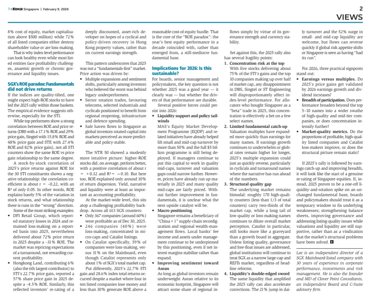 Valuation multiples have expanded more quickly than earnings for many names. If earnings growth continues to underwhelm or global rates remain higher for longer, 2025’s multiple expansion could just as quickly reverse, particularly in cyclicals and turnaround names where the narrative has run ahead of the numbers.Structural quality gap.