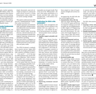 The same liquidity that amplified 2025’s rally can accelerate corrections. The 21% jump in daily turnover and 52% surge in small‑/mid‑cap liquidity are welcome, but flows can reverse quickly if global risk appetite shifts or if Singapore is seen as having “had its run”.