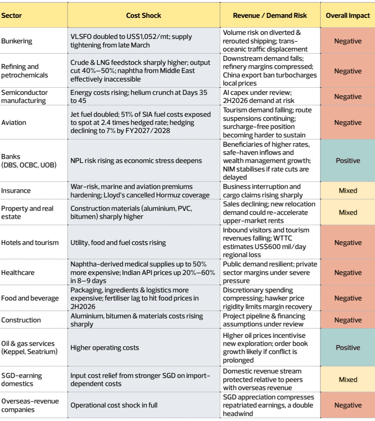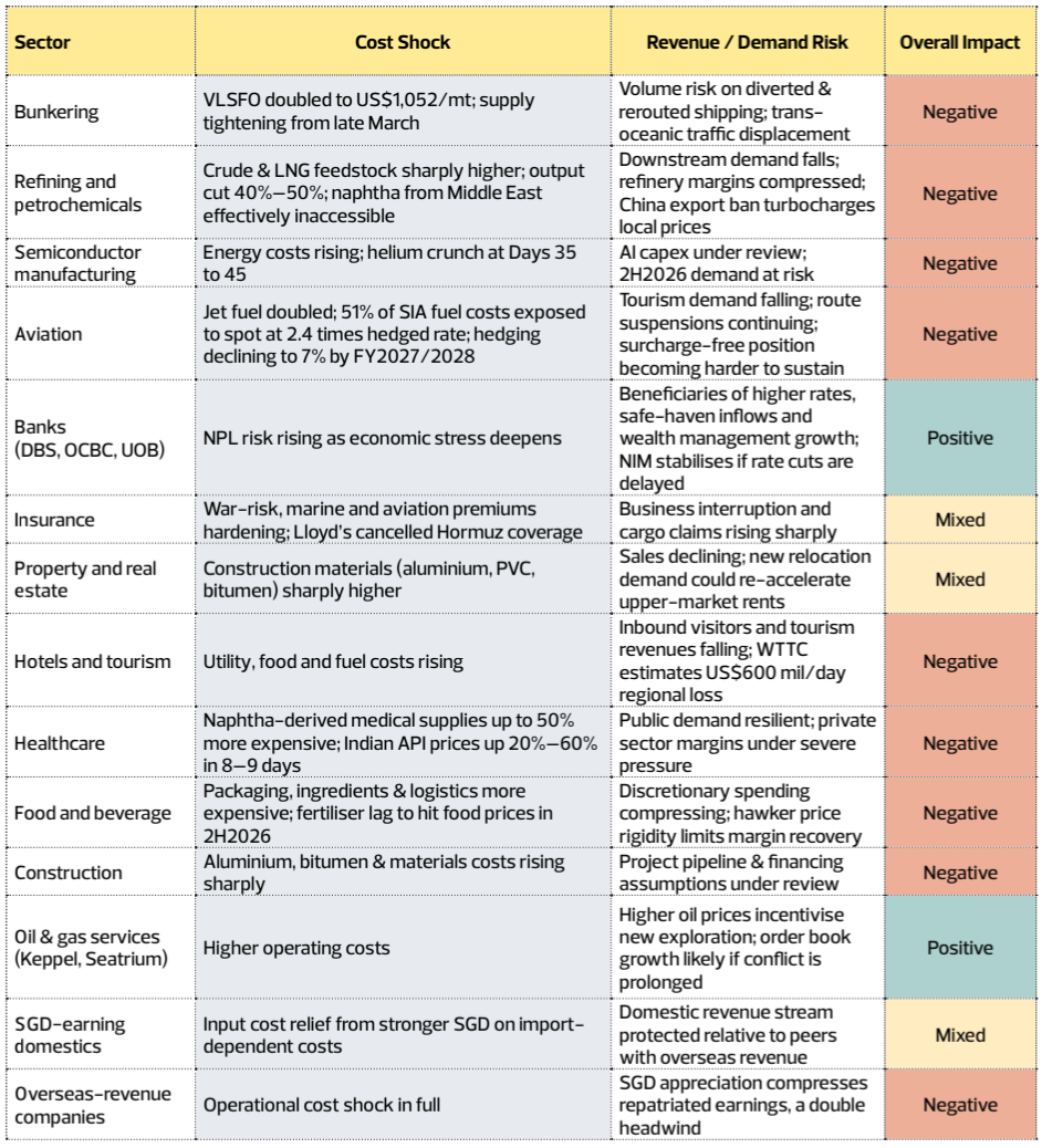 Singapore's exposure is not simply a matter of higher prices feeding through to household budgets. The disruption strikes at four structural pillars employing more than 120,000 people directly.
