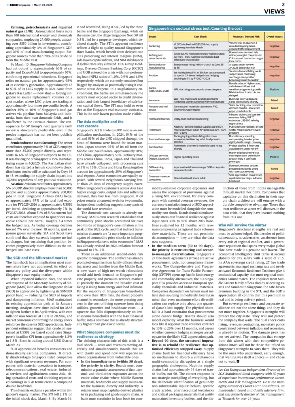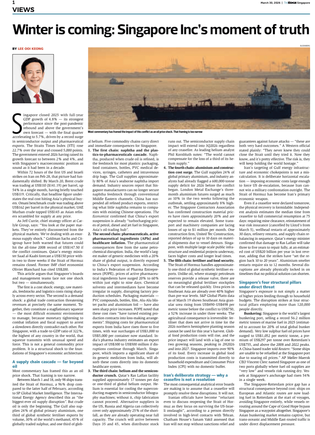 The Edge Singapore featured my article "Winter is Coming: Singapore Inc's Moment of Truth" on 30 March 2026