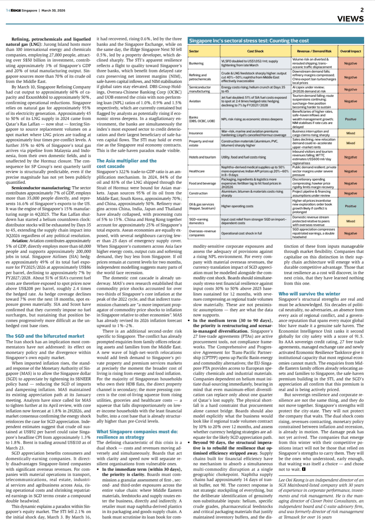 Aviation. Aviation contributes approximately 5% of GDP, directly employs more than 60,000 people and supports approximately 200,000 jobs in total. Singapore Airlines hedges approximately 49% of its total fuel exposure for FY25/26 at approximately US$86 per barrel, declining to approximately 7% by FY27/28. About 51% of SIA's current fuel costs are therefore exposed to spot prices now above US$208 per barrel, roughly 2.4 times the hedged rate. As hedge coverage declines toward 7% over the next 18 months, spot exposure grows materially. SIA and Scoot have confirmed they currently impose no fuel surcharges but sustaining that position becomes progressively more difficult as the unhedged cost base rises.